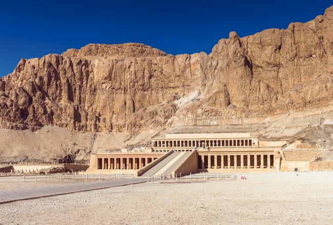Вид на храм Хатшепсут в Дейр-эль-Бахри. Современное фото