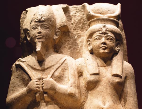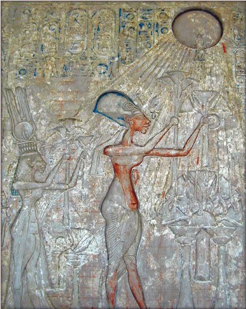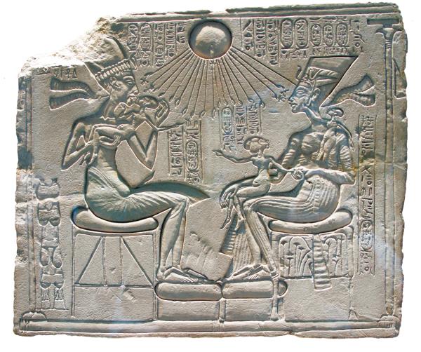 Эхнатон и его жена возносят хвалу Атону. Рельеф XIV в. до н. э.