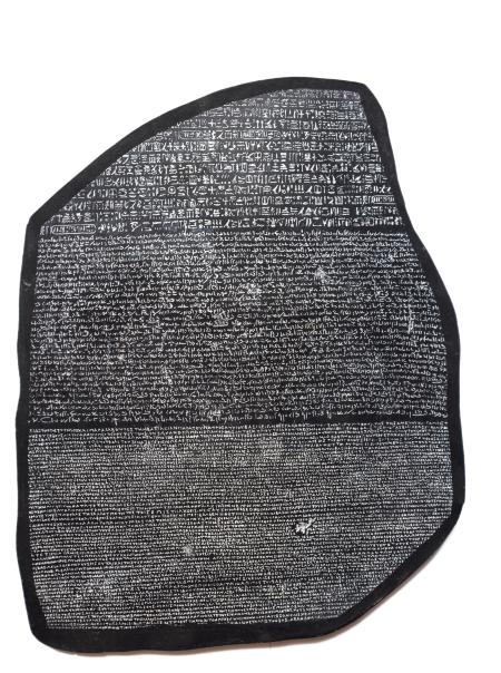 Розеттский камень. Хорошо видно деление на три разных варианта текста. II в. до н. э.