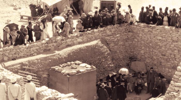 Ученые, туристы, корреспонденты и просто любопытствующие рядом с открытой гробницей Тутанхамона. Фото нач. 1923 г.