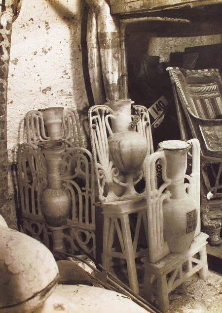 Часть предметов из гробницы Тутанхамона, пронумерованных и сфотографированных исследователями. Фото 1922 г.