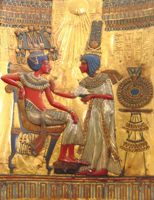 Спинка трона из гробницы Тутанхамона с изображением самого фараона и его жены. II тыс. до н. э.