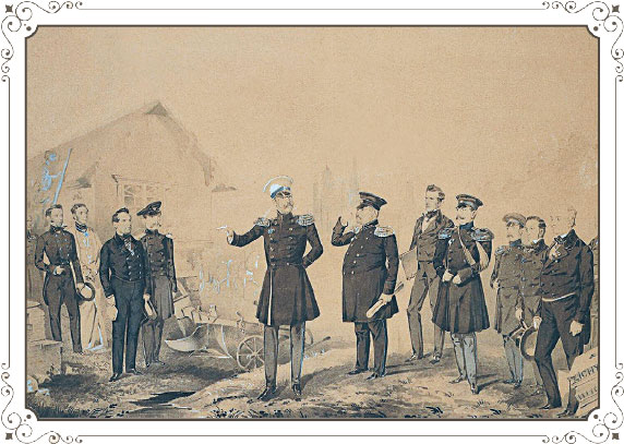 М. А. Зичи. Николай I инспектирует строительные работы. 1853 г.