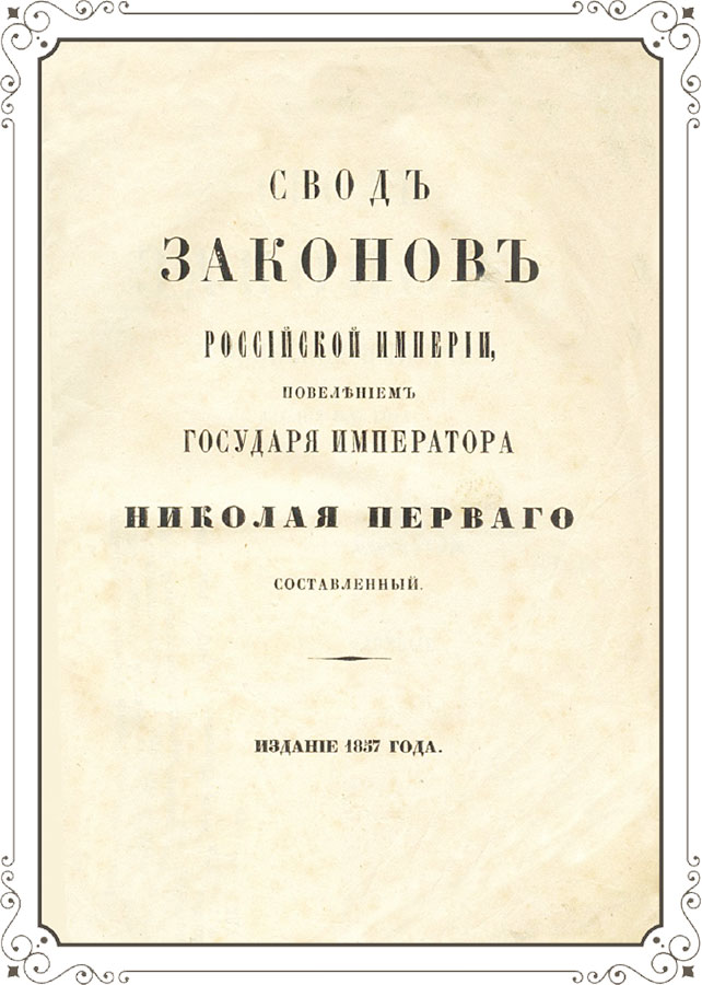 Титульный лист свода законов Российской империи, составленный при императоре Николае I, издание 1857 г.