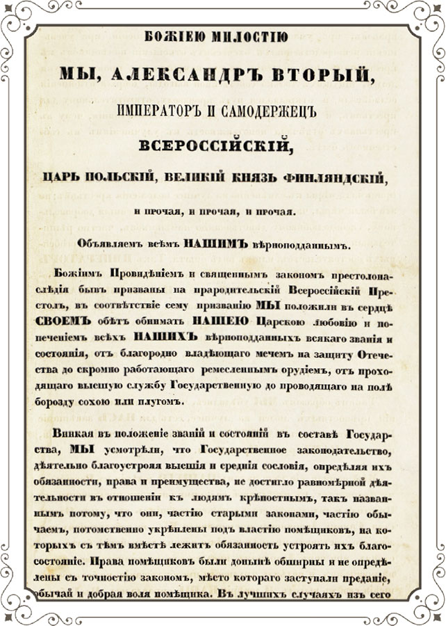 Высочайший манифест 19.02.1861 (Об отмене крепостного права)