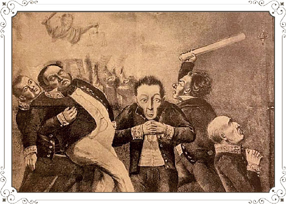 Непрошеная гостья – Фемида. Карикатура 1880-е гг. (Из собрания А. И. Станкевича)