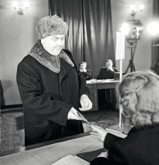 СССР. Москва. Член Политбюро ЦК ВКП (б), секретарь ЦК ВКП (б) Георгий Максимилианович Маленков во время регистрации для голосования на выборах в Верховный Совет РСФСР. ТАСС
