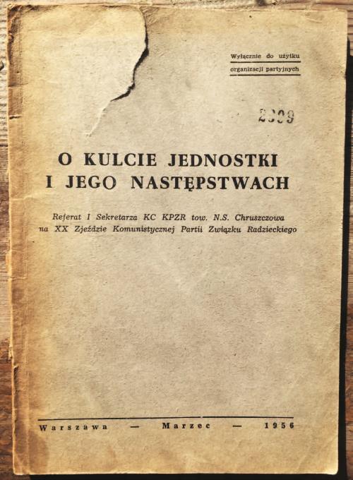 «О культе личности и его последствиях», доклад Первого секретаря ЦК КПСС Н. С. Хрущева на XX съезде КПСС, польское издание, март 1956 г., для внутрипартийного пользования в Польской объединенной рабочей партии