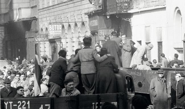 Демонстрация в Будапеште – десятки тысяч людей вышли на улицы Венгрии, чтобы потребовать прекращения советского правления в Дьёре. Венгрия, 23 октября 1956 г.