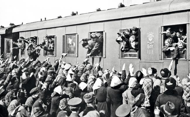 Молодежь уезжает на освоение целинных земель в Казахстане.