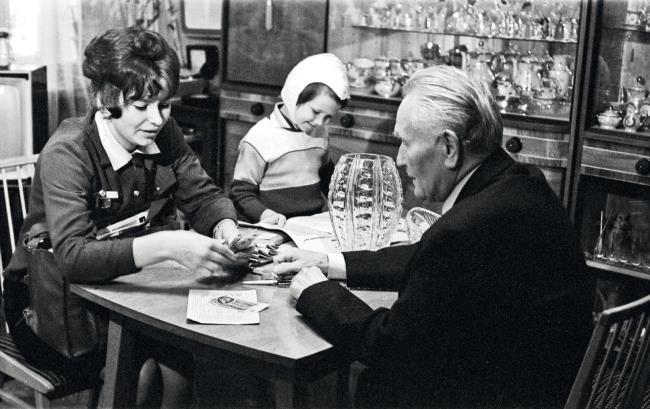 Почтальон Антонина Алексеева доставила на дом пенсию по старости персональному пенсионеру Ивану Зарянову