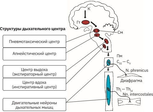 Рис. 76. Система функциональной организации дыхательного центра