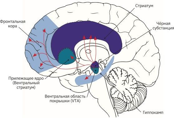 Рис. 83. Основные элементы дофаминовой «системы вознаграждения»