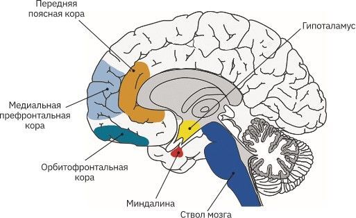 Традиционно мозг рассматривается как иерархическая структура, где высшие отделы (префронтальная кора) контролируют низшие (лимбическую систему и ствол мозга). Однако, как мы смогли убедиться, отношения между различными отделами мозга гораздо сложнее и больше напоминают непрерывный двусторонний диалог. На нейронном уровне он реализуется через множество прямых и непрямых путей между различными отделами мозга.