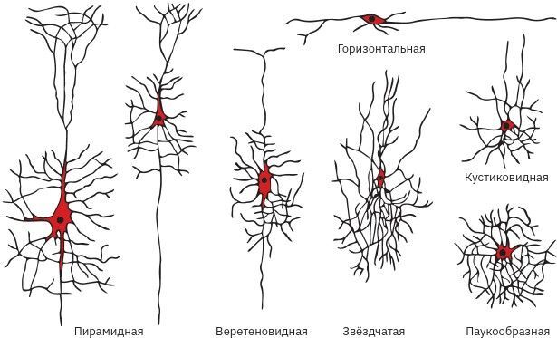 Рис. 10. Различные формы мультиполярных нейронов коры головного мозга