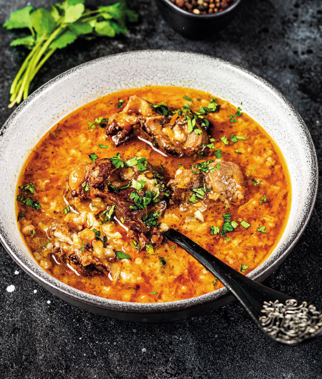 Настоящий грузинский харчо – это острый, пряный и густой суп с говядиной, орехами и ткемали. В афганском казане он раскрывается особенно ярко: мясо буквально распадается, рис не теряет форму, а специи насыщают каждую ложку.