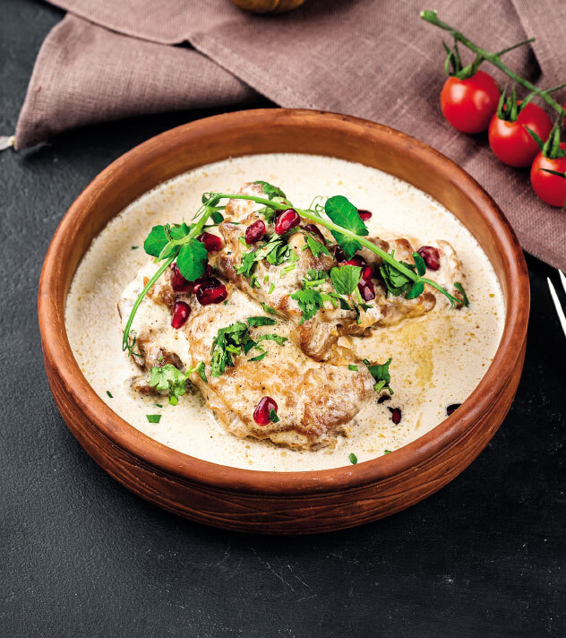 Чихиртма – грузинский суп из курицы с яйцом и лимонным соком. Легкий, но сытный, с шелковистой текстурой бульона. Афганский казан позволяет курице быстро стать мягкой и ароматной, а вкус – будто с тбилисской кухни.