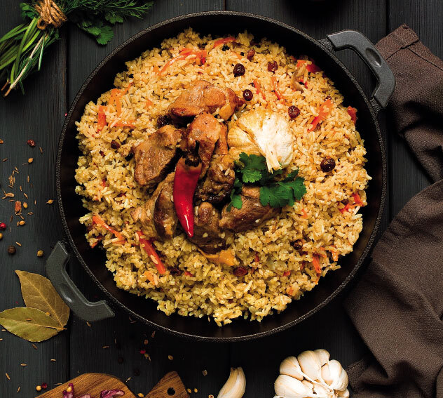 Этот плов – классика восточной кухни, адаптированная под афганский казан. Толстые стенки равномерно распределяют жар, благодаря чему мясо получается мягким, а рис – рассыпчатым, без лишней влаги. Готовится с минимумом вмешательств: все укладывается слоями, варится под крышкой и сохраняет яркий вкус специй. Подавать лучше всего с простым салатом из помидоров, лука и болгарского перца – он освежает и подчеркивает насыщенность блюда.