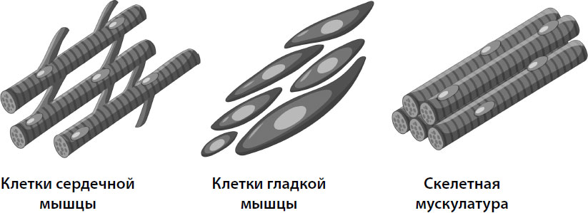 Гладкая мускулатура, наоборот, не имеет поперечных полос, а, как подсказывает название, обладает гладкой структурой. Этими тканями нельзя управлять силой воли – они функционируют по сигналу вегетативной нервной системы. Например, этот тип мышц, кроме всего прочего, служит для кишечника и сосудов.