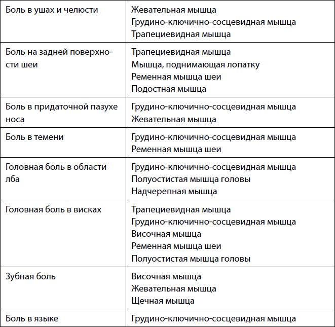 Триггерные точки на голове, лице и челюсти