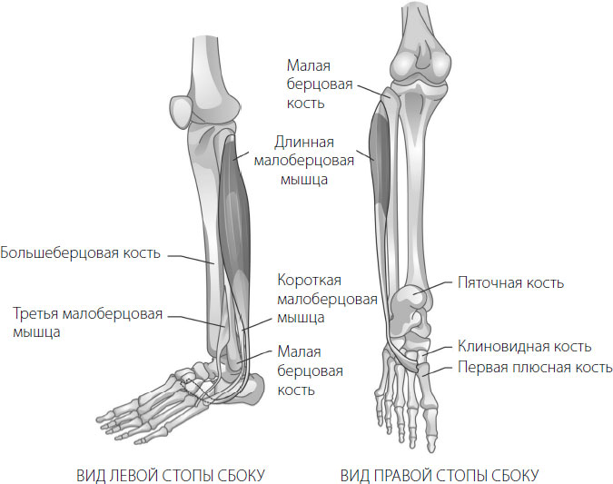 Большинство триггерных точек находятся в длинной малоберцовой мышце, самой большой из трех. Массируйте эту область либо большими пальцами, либо ложитесь боком на мячик для массажа. Короткую малоберцовую мышцу можно локализовать, если приподнять внешний край ступни одновременно с передней областью. Ощутимое сокращение в боковой части икры укажет на нужную мышцу. Третья малоберцовая мышца находится над внешней частью лодыжки. В этом случае удобно работать пальцами. Также применить хорошее давление поможет массажный мячик, на котором, например, сидя на краю кровати, нужно массировать внешнюю сторону нижней области ноги.