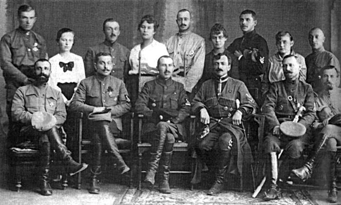 Полковник Сабельников (сидит третий слева по центру) в Екатеринбурге во главе военной комендатуры города, 22 августа 1918 г.