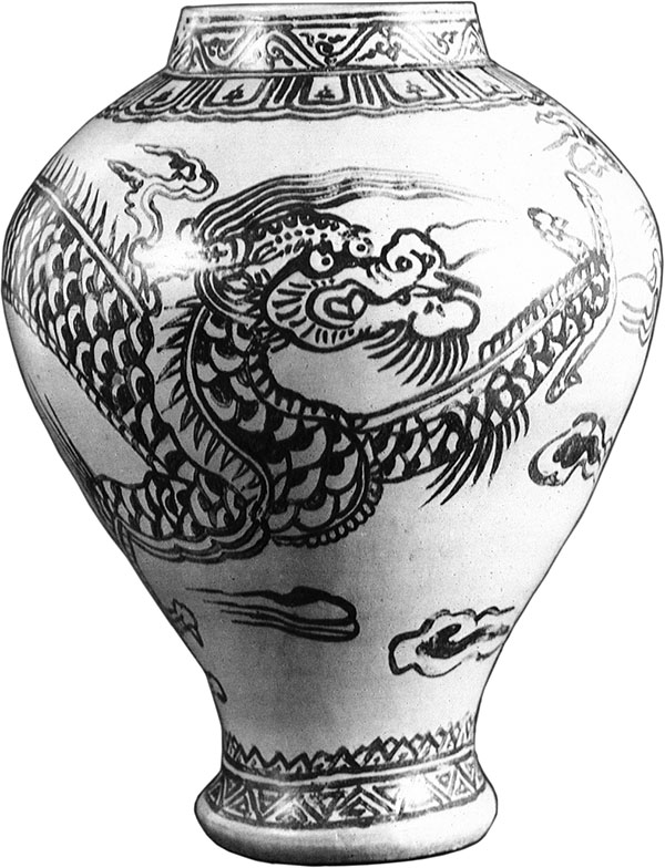 Белая фарфоровая ваза с изображением дракона. Династия Чосон