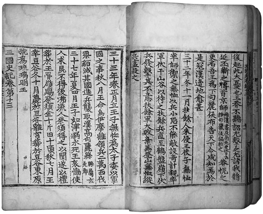 • «Самгук Юса», или «Оставшиеся записи о трех государствах» (2-я половина XIII века). Особая ценность этого источника в том, что он частично представляет собой компиляцию более древних документов, не сохранившихся до наших дней. Там содержатся в числе прочего материалы, восходящие к устной традиции: различные мифы о первых легендарных правителях, о волшебных существах. Предполагаемым автором «Самгук Юса» был буддийский монах, проживавший в Корее, по имени Ирён.