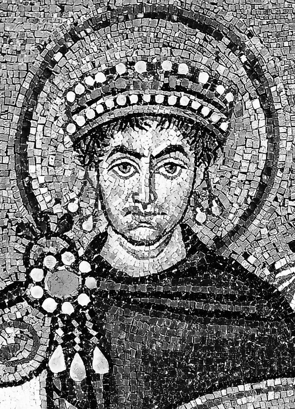 Мозаичный портрет Юстиниана I в базилике Сан-Витале в Равенне