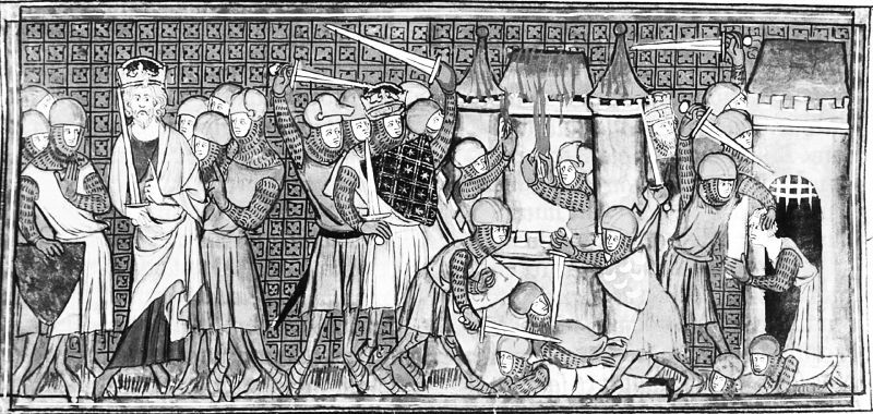 Войска Карла Великого захватывают замок. Миниатюра XIV в.