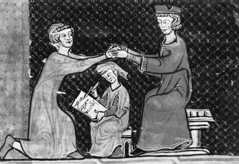 Церемония оммажа. Миниатюра XIII века