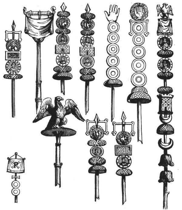 Римские штандарты – опознавательные знаки воинских подразделений, прообразы более поздних знамен и гербов. Реконструкция XIX века
