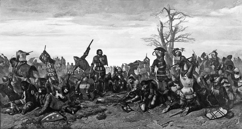 Бой Тридцати (один из эпизодов Столетней войны). Худ. Октав Л’Харидон. 1857