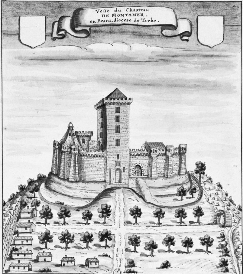 Французский замок Монтанер в XIV веке. Изображение 1704 года