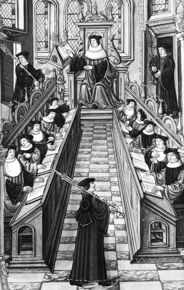 Подготовка к диспуту в Парижском университете. Миниатюра начала XVI в.