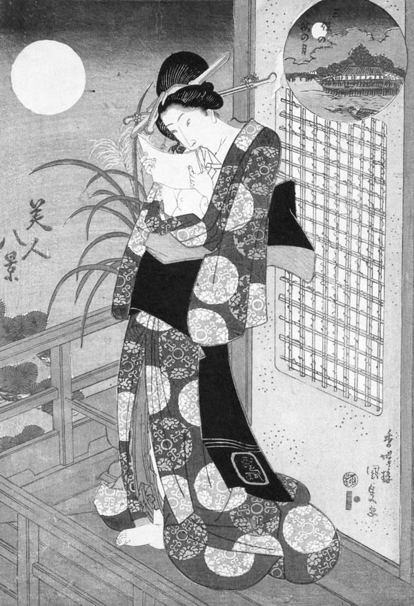 Утагава Кунисада. Женщина на веранде при свете луны. 1830-е гг.
