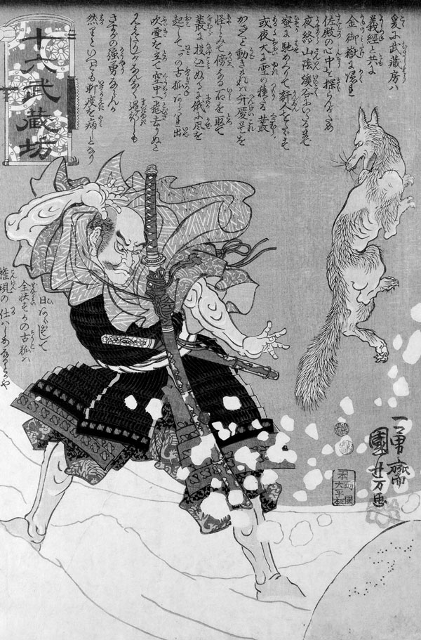 Утагава Куниёси. Бэнкэй и кицунэ. 1840-е гг.
