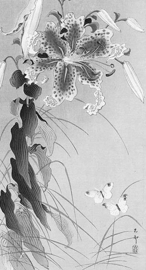 Косон Охара. Лилии и бабочки. Нач. XX в.