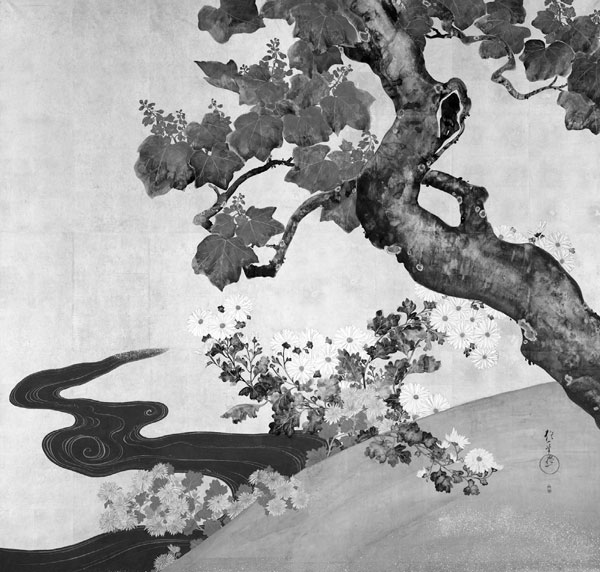 Сакаи Хоицу. Хризантемы и павловния. Кон. XVIII – нач. XIX в.