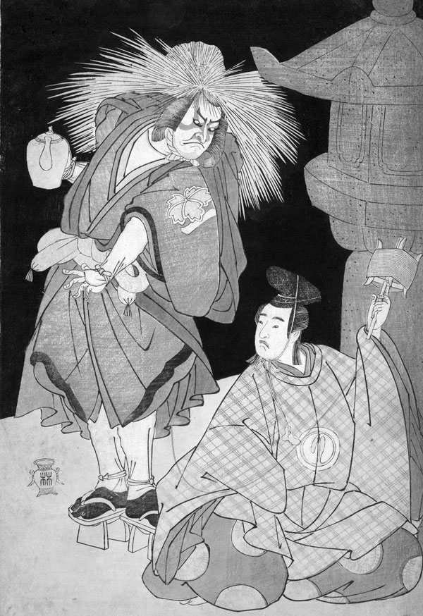 Кацукава Сюнсё. Актеры театра кабуки. Кон. XVIII в. Считается, что жанр кабуки вырос из богослужений в честь Сусаноо и других богов