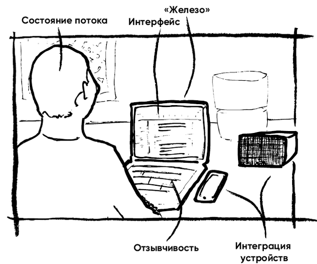 И это я говорю только о программах. На меня, как на пользователя, также влияет «железо» моего ноутбука – например, насколько большой и яркий у него экран, хватает ли его характеристик, чтобы я могла эффективно пользоваться всеми этими разнообразными установленными программами. Тактильные ощущения от сенсорной панели при прокрутке веб-страниц. Удовлетворение от щелканья клавиш под пальцами. Это тоже UX.