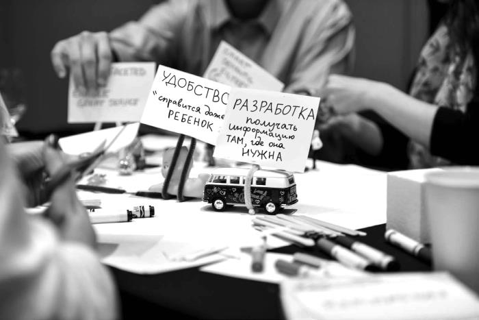 Вы будете встречаться с заинтересованными представителями бизнеса или командами по разработке и перекраивать свои цели, по сути, создавая довольно свободный, но осязаемый набор требований. Деловым людям, не привыкшим к странному миру дизайна, будет легче, если вы сначала с ними поговорите, не доставая сразу маркеры и стикеры.