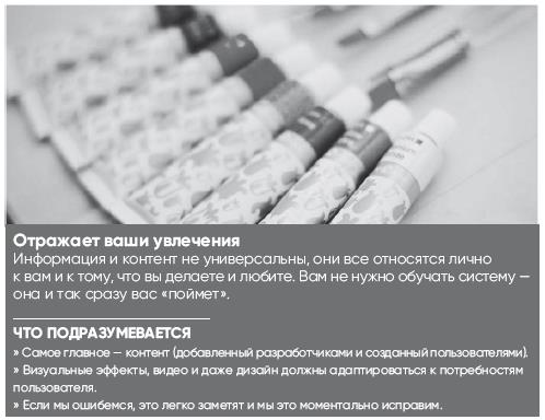 Принципы дизайна помогут вам сформулировать характеристики, которые должны сделать UX запоминающимся или необычным. Продукт обладает индивидуальностью или чувством – вам кажется, что это звучит странно? Некоторые продукты не имеют индивидуальности, но тем не менее они могут оставлять отчетливое впечатление. Другие продукты могут казаться сложными, загадочными или слишком технологичными. Возможно, вы также имели дело с продуктами, которые кажутся веселыми, дружелюбными, простыми и приятными (рис. 7.3–7.4) либо провоцирующими играть, общаться, работать, заниматься творчеством и т. д. Как правило, пользователи больше ценят продукты, обладающие именно такими особенностями.