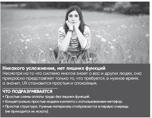 Выходите за рамки простоты. Не поддавайтесь желанию добавить в список принципов «удобно для пользователя», «легкое в применении» или «простое». Все это полезные вещи, но для хорошего дизайна они уже являются минимально необходимыми. Благодаря быстро развивающимся стандартам дизайна простота восприятия больше не означает дифференцированность восприятия.