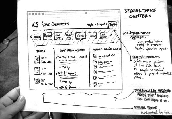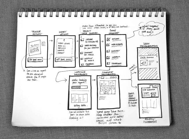 Эскизы может создавать любой. Кроме вас, эскизы могут создавать и другие. Фактически, если вы предложите межфункциональной команде выразить свои идеи при помощи ручки и бумаги, это позволит вовлечь их в процесс, и они расскажут вам о своих новых замечательных идеях, что прекрасно!