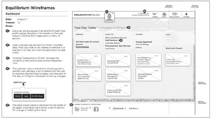 Часто этот момент наступает одновременно с тем, когда дизайн выходит из удобного, неоднозначного состояния эскизов и начинает принимать определенную (и определенно цифровую) форму. Возможно, люди, увидев наконец что-то определенное и осязаемое, забеспокоятся обо всем, что еще не доведено до ума. Опасаясь, что их принудительно заставят двигаться в направлении, которое еще не полностью ясно, люди иногда приходят в бешенство. Я называю это периодом расстановки приоритетов. В это время определенно следует тесно, лицом к лицу общаться с командой. Если возможно, составьте план заранее и ожидайте, что во время создания вайрфрейма пройдет период расстановки приоритетов, и вам нужно будет в течение нескольких дней находиться вместе со своей командой лично или постоянно онлайн.