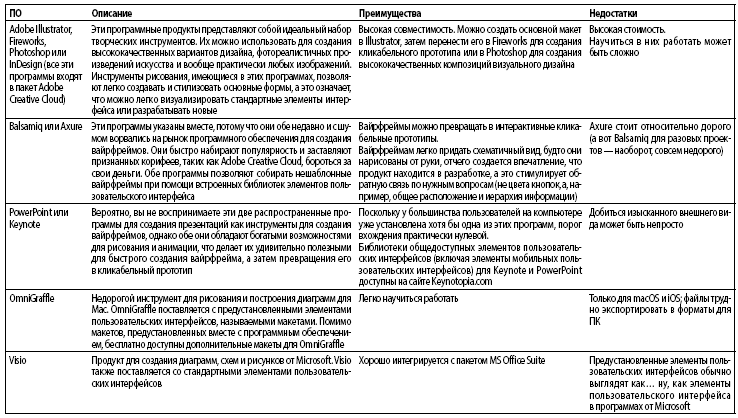 Таблица 7.1. Программное обеспечение для создания вайрфреймов