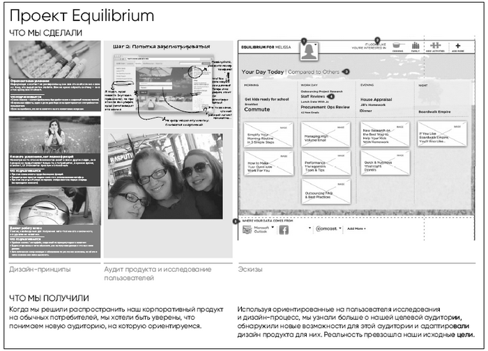 По возможности попробуйте уместить всю историю на одной странице, как на рис. 9.2. Такую страницу легко распечатать или разослать. Вы также можете объединить все свои краткие истории успеха в презентацию или другой документ, который будет представлять собой готовое портфолио вашей работы по разработке UX.