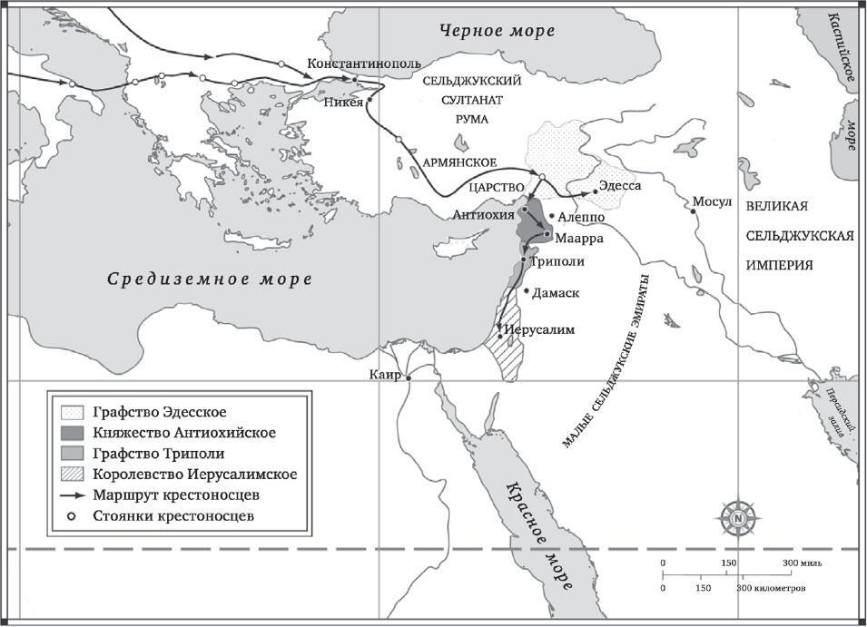 Первая волна европейских рыцарей захватила немало городов и основала четыре «крестоносных королевства», как предполагалось, постоянных: теперь будущим крестоносцам из Англии, Германии или Франции было где поселиться и было к какой армии присоединиться после приезда на Восток. Некоторые христиане западноевропейского происхождения, без сомнения, рождались, жили и умирали в этих королевствах, однако большинство приезжало лишь на несколько лет: сражались за свое дело и уезжали домой, если повезет, с какой-нибудь военной добычей. Крестоносцы возвели впечатляющие каменные крепости, однако в их пребывании на Востоке всегда чувствовалась временность, нестойкость.