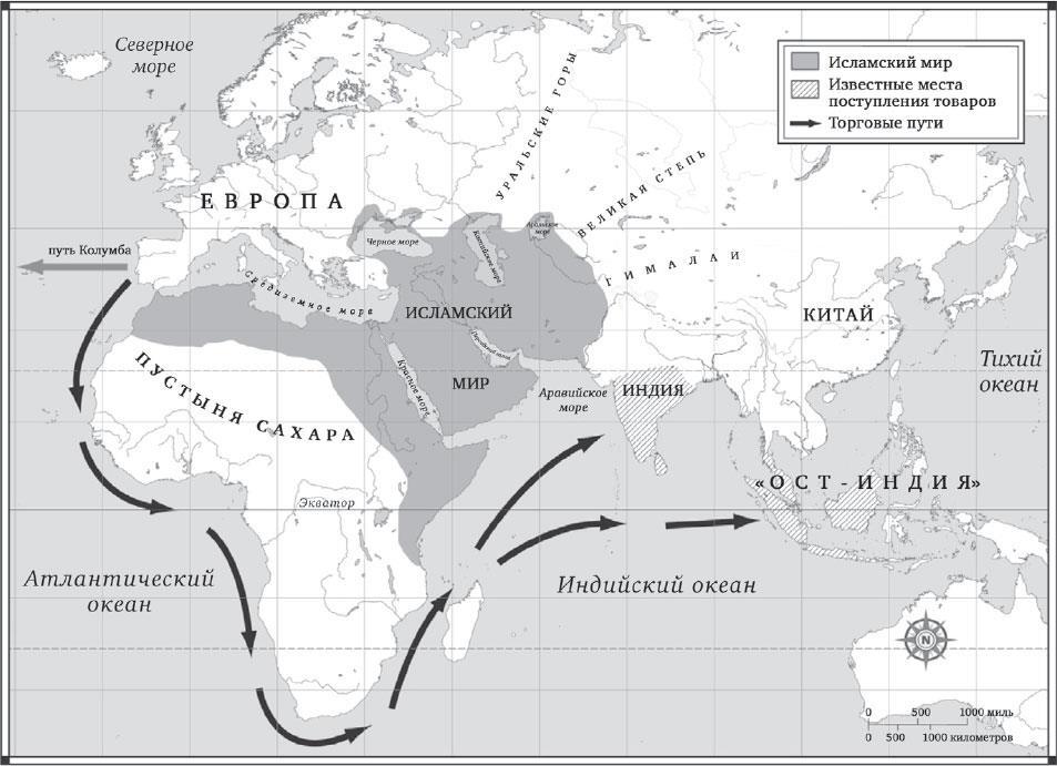 Проблема в том, что крестоносцы разожгли в Европе аппетит к этим благам, но сами же и отрезали от них европейских торговцев, создав пояс враждебности к христианам от Египта до Азербайджана. Европейские коммерсанты не могли пробиться через этот пояс и торговать непосредственно с производителями: они вынуждены были иметь дело с мусульманскими посредниками. Верно, что в эти годы Марко Поло со своими спутниками дошел до Китая; но это была редкая аномалия, и европейцы поражались тому, что ему удалось совершить такое путешествие и невредимым вернуться назад. Большинство европейцев этому даже не верили: книгу Марко Поло о своих приключениях они прозвали «Миллионы», имея в виду, что в ней он якобы несколько миллионов раз солгал. Мусульмане владели и восточным берегом Черного моря, и Кавказским хребтом, и побережьем Каспия. Они обладали Красным морем и всеми подходами к нему. Продукты Индии и «дальних Индий» европейцам приходилось покупать у мусульманских купцов из Сирии и Египта, которые, несомненно, взвинчивали цены так, как только мог позволить рынок – особенно для покупателей-христиан из Европы, глядя на которых, вспоминали все зло, причиненное им во время Крестовых походов, а также то, что христиане-фаранги в свое время объединились против них с монголами.